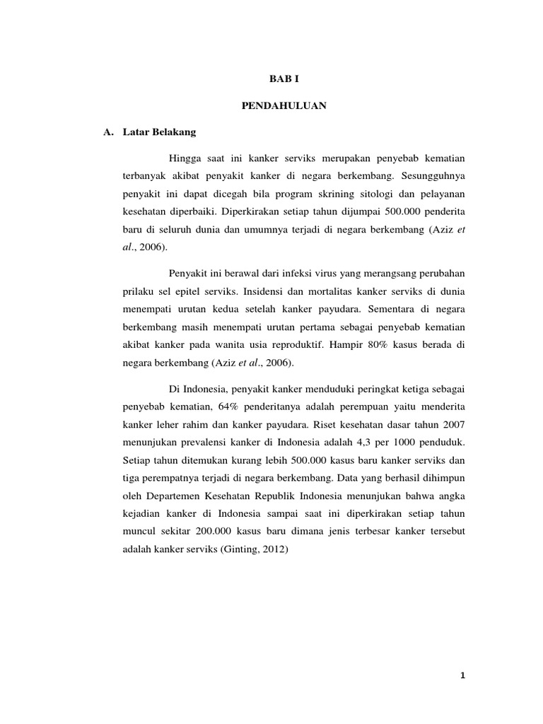 Definisi kanker serviks kanker serviks adalah tumor ganas yang paling sering ditemukan pada organ reproduksi wanita. Semua wanita berisiko menderita kanker ini. 1977, kanker serviks menduduki urutan pertama, yaitu 432 kasus di antara 918 kanker pada perempuan. Dengan mengelompokkan jurnal berdasar topik pembahasan seperti terlihat pada tabel1. Klik di sini untuk informasi file lengkap proposal penelitian tentang kanker serviks selengkapnya.
